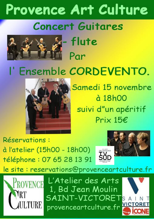 Provence Art Culture vous propose Flûte par l'ensemble CORDEVENTO le samedi 15 novembre à 18 heures suivi d'un apéritif prix...